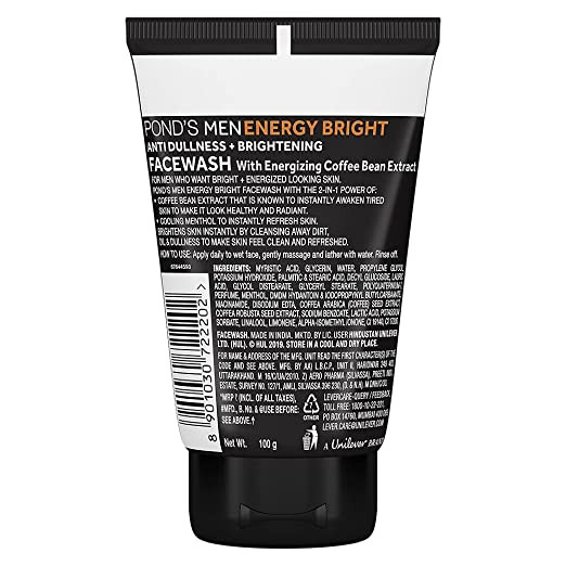 POND'S Men's Energy Bright Face Wash Coffee Beans Bright Skin, 100g